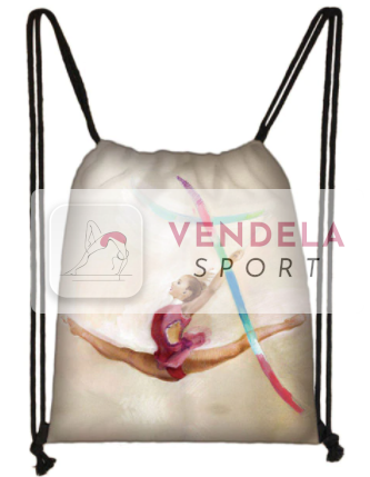 Batoh potištěný s provázky.