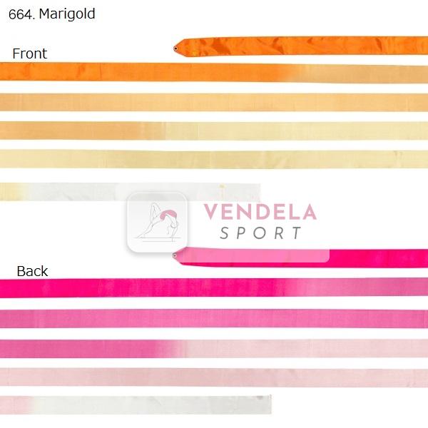Chacott stuha Infinity. Stuha má jinou barvu na lícu a jinou barvu na rubové straně. Délka:                   6 m a 5 m Barva:                   Marigold 664 Materiál:               Hedvábí Certifikace FIG:     ANO celý popis